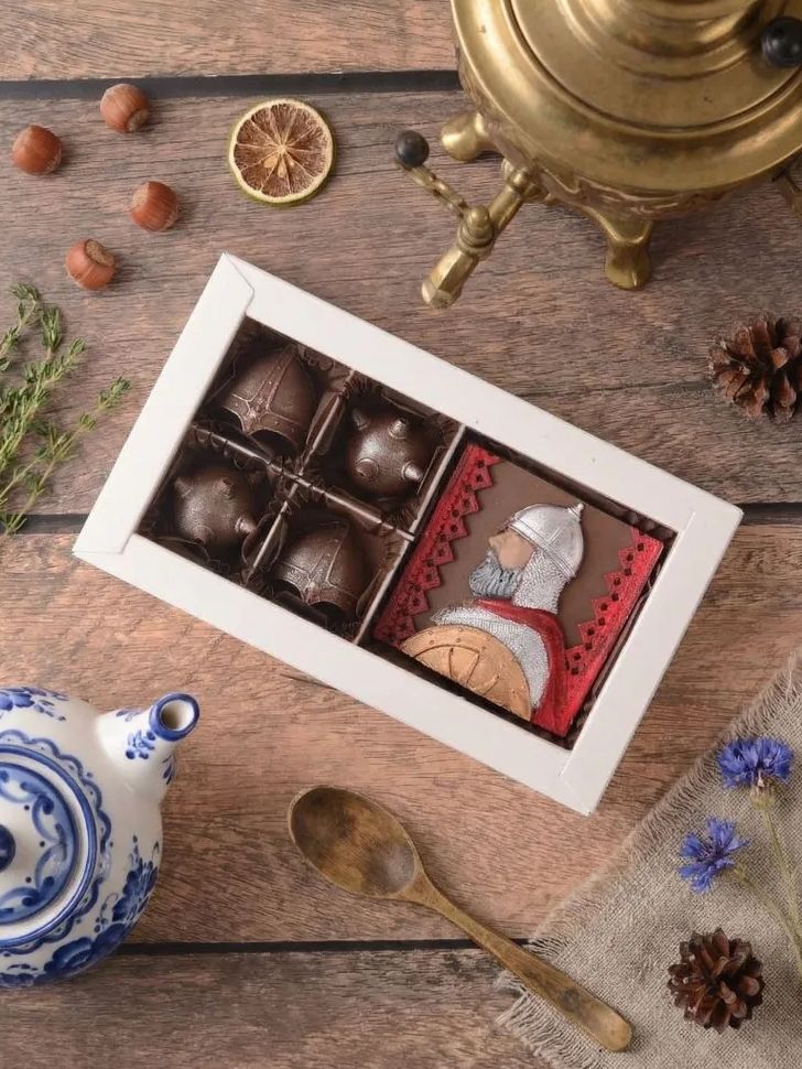 Шоколадный набор «Русский богатырь» — это идеальное сладкое поздравление для сильных и надежных мужчин. Он объединяет изысканный вкус и мощную символику. Каждый элемент представляет собой фигурный шоколад ручной работы из нежнейшего молочного шоколада без начинок.